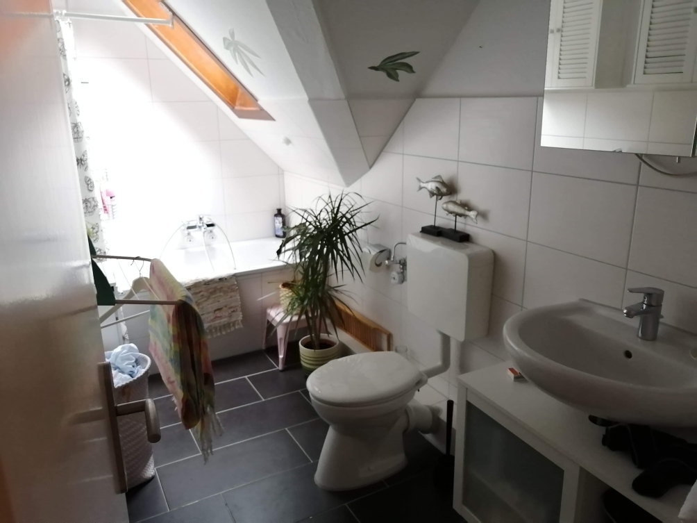 Die Wohnung befindet sich im 1. Obergeschoss eines kleinen Mehrfamilienhauses.